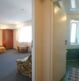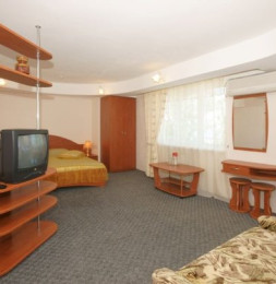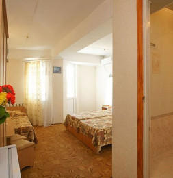 - В номере: двуспальная кровать, раскладной диван, ТВ, холодильник, кондиционер, душ, туалет.