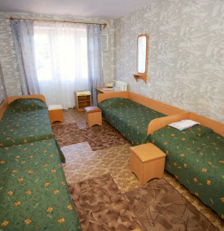 - В номере: три раздельные кровати, ТВ, холодильник, кондиционер. Удобства (душ и туалет) находятся на этаже.